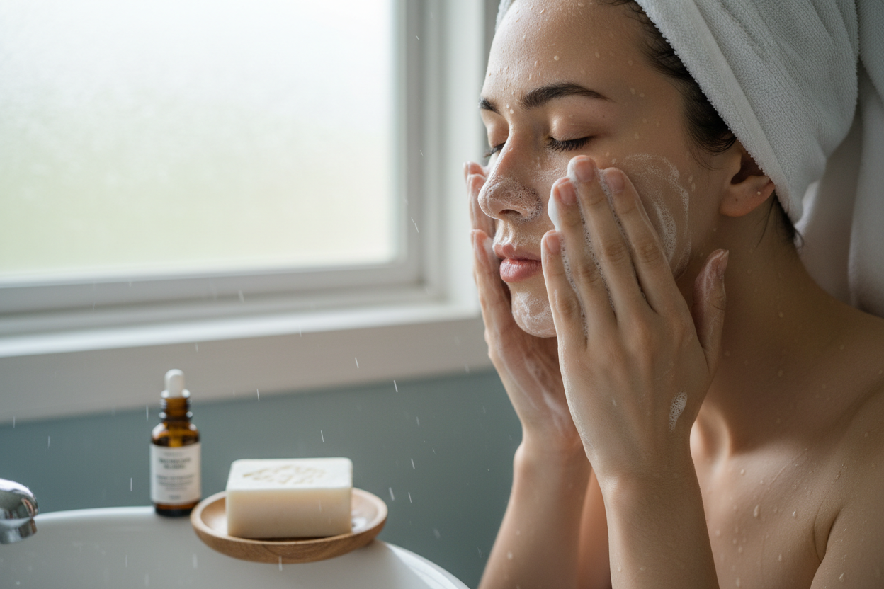 La limpieza es el primer paso para una piel sana. Utiliza un jabón adecuado a tu tipo de piel para eliminar impurezas y preparar el rostro.
